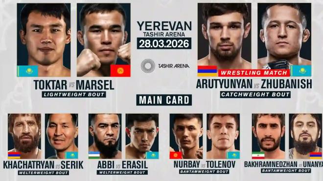 | Абдумалик Йорбутаев (4-1) | Ерасыл Акранбек (0-0) | MMA |