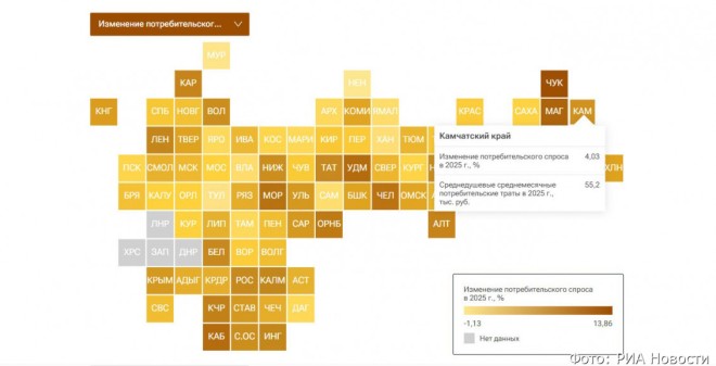 Камчатка заняла 25 место в свежем рейтинге потребительского спроса. Рост показателя в регионе за 2025 год составил впечатляющие 4,03%. Исследование РИА Новости, проанализировавшее динамику трат населения по всей стране, выявило интересные тенденции. По данным ИА «Кам 24», эксперты оценили обороты розничной торговли, услуг и общественного питания. Среднедушевые траты камчатцев достигают 55,2 тысячи рублей в месяц, что на порядок превышает среднероссийские 48,8 тысячи. Лидирует Чукотский автономный округ с ростом на 13,9%, следом идёт Магаданская область с 10,1%. Всего в 80 субъектах страны наблюдается увеличение спроса, тогда как в четырех регионах зафиксировано снижение, а ещё в одном он остался на уровне прошлого года.