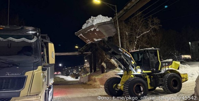 На улицах Петропавловска-Камчатского продолжается борьба с последствиями снежных циклонов. Минувшей ночью на помощь городу вышла целая армия из более чем пятидесяти единиц техники. Подрядчики, подгоняемые временем, активно работают на магистральных дорогах и внутриквартальных проездах. Так, ООО «Тепловодхоз» занимается обработкой ПСС и расчисткой тротуаров на улице Арсеньева, а ГУП КК «ДРСУ» вывозит снег с проспекта 50 лет Октября и улицы Пограничной. Не отстают и другие организации: МУП «СДРС» и ИП Сёмин А. В. активно очищают накаты и внутриквартальные проезды.
